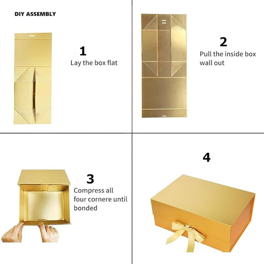 New Golden Modern Folding Gift ๐ Box with Ribbon๐ (Size- 23x16x10cm)